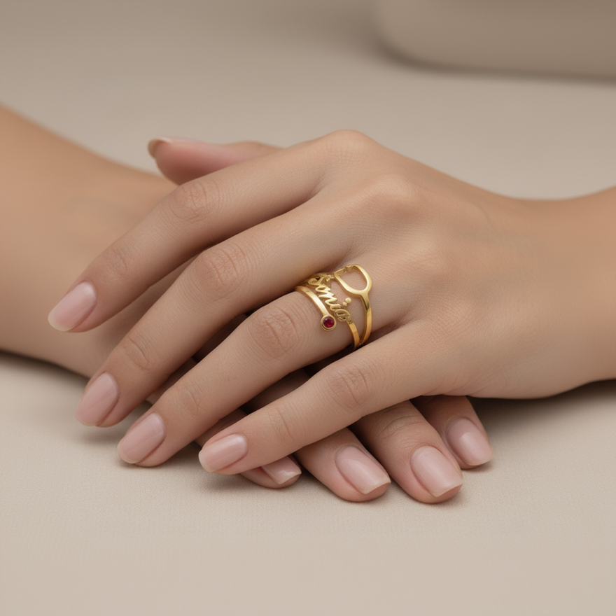 Heart Stethoscope Name Ring – Personalized Gold Medical Jewelry